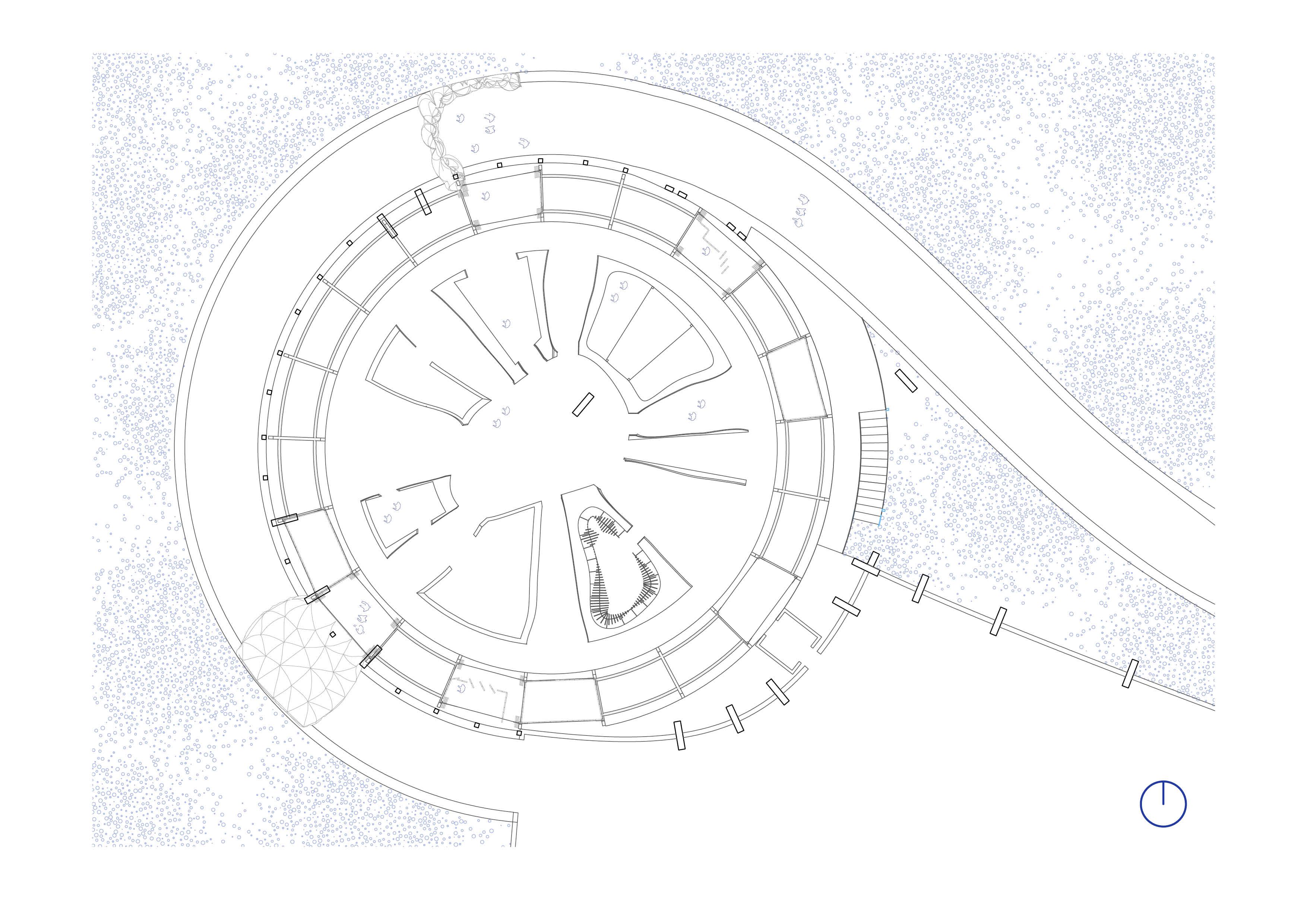 The project inserts itself in a "lost space" between the bridges of europes biggest highway interchange.